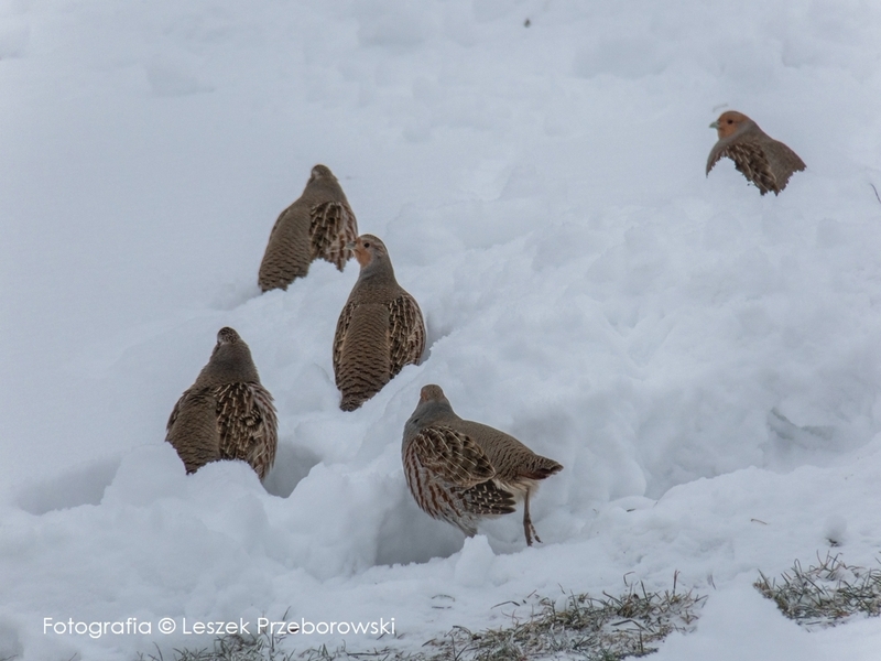 Na tle bieli śniegu widać, że kuropatwa nie jest po prostu szara. Jej upierzenie to mozaika brązów, szarości i rdzawych plam na policzkach oraz gardle. Charakterystyczna jest ciemnobrązowa "podkowa" na piersi, szczególnie wyraźna u samców. W Polsce kuropatwy nie są zbyt liczne, w dodatku jest ich coraz mniej. Ich liczebność ocenia się na około 110 tysięcy par. Ich widok na śniegu to jeden z najbardziej klasycznych motywów w polskiej przyrodzie, choć z końcem XX wieku nastąpił gwałtowny spadek liczebności tego gatunku cały czas dzielnie walczy on swoją pozycją w krajobrazie polskich pól i łąk.