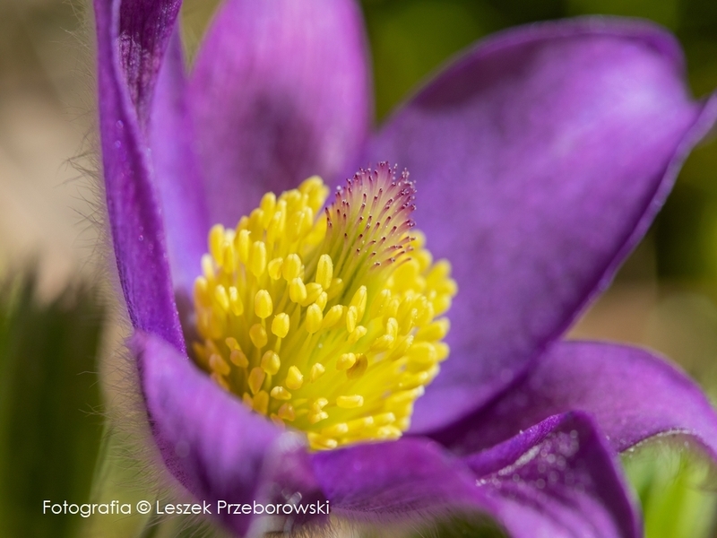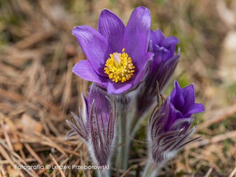 W czasie kwitnienia otwierają się szeroko (stąd ta nazwa gatunkowa rośliny). Okwiat złożony z 6 działek o fioletowo - niebieskim kolorze. Wewnątrz kielicha liczne słupki i pręciki. Młode pączki wychodzące z leśnego runa są okryte długimi, białymi włoskami. Łodyga o wysokości 10–20 cm jest silnie owłosiona, gdzie w czasie dojrzewania wydłuża się do 35 cm. W jednym stanowisku można zaobserwować nawet kilkadziesiąt osobników. Posiada przedsłupne kwiaty zapylane przez mrówki.